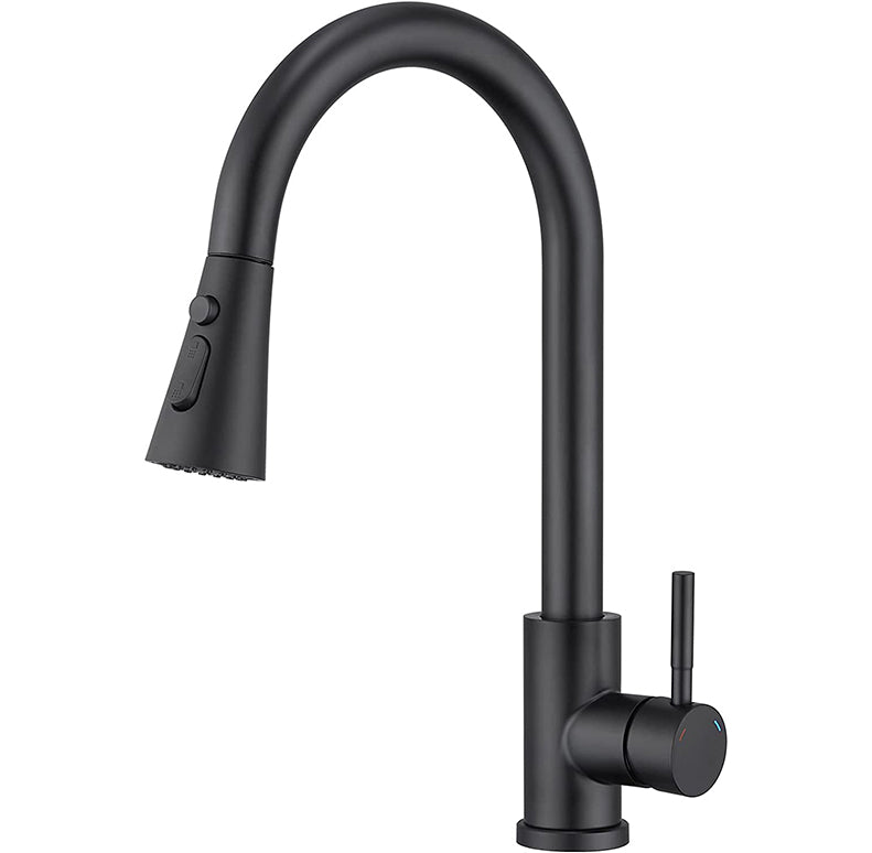 Baterie chiuveta bucatarie neagra cu dus extractibil, 3 moduri de curgere, vopsea rezistenta impotriva petelor si a urmelor, 38 cm inaltime